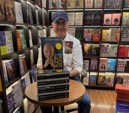 Anupam wrote the caption: AUTHOR ANUPAM KHER: Seeing my books on bookstore shelves fills me with a quiet, overwhelming gratitude. As an actor, I always believed my stories would live on screen and stage!! I never imagined I would one day be an author.”