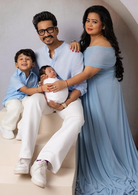 The photoshoot beautifully captures Bharti, husband Haarsh Limbachiyaa, their elder son Laksh aka Gola and the youngest member of the family Kaju aka Yashveer.