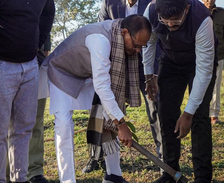 Chief Minister Bhajan Lal Sharma presented a plough to Shivraj Singh Chouhan. The Union Minister lifted it and greeted the farmers, a gesture symbolising respect for agriculture and farming communities.