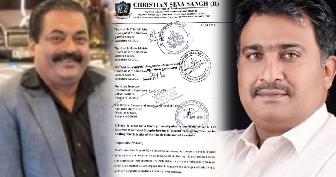 Bengaluru: The Christian Service Association (CSS) has demanded the constitution of a Special Investigation Team (SIT), monitored by sitting judges of the Karnataka High Court, to probe the death of Dr C.J. Roy, chairman of the Confident Group, under what it described as “mysterious circumstances”.