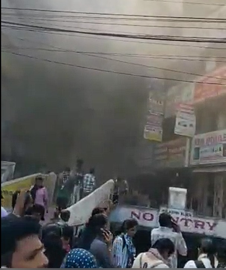 Fire-fighting personnel with fire engines rushed to the spot and launched an operation to douse the blaze and rescue those trapped inside.
