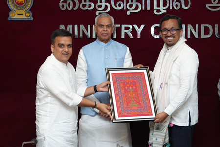 Colombo, Feb 5 (IANS) Gujarat Governor Acharya Devvrat and Deputy Chief Minister Harsh Sanghavi met Sri Lanka’s Minister of Industry and Entrepreneurship Development, Sunil Handunnetti in Colombo on Thursday, discussing collaboration through connecting industries of Gujarat and Sri Lanka for exploring opportunities in investment and industrial development in the island nation.