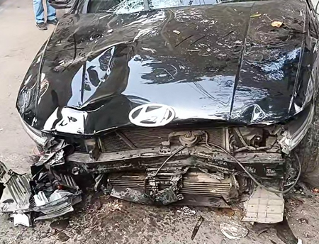 According to one eyewitness, the Verna was travelling at around 100 km per hour and first crashed into a wall, then struck a pole, before hitting the e-scooter.