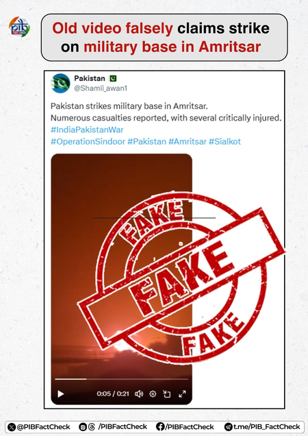 The Press Information Bureau’s Fact Check division promptly addressed the misinformation, stating: “Pakistan Propaganda Alert! Pakistan-based handles are spreading old videos falsely alleging strikes on a military base in Amritsar. The video being shared is from a wildfire in 2024. Avoid sharing unverified information and rely only on official sources from the Government of India for accurate information.”