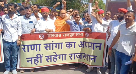 Jodhpur, March 24 (IANS) Protests erupted in Jodhpur on Monday against Samajwadi Party MP, Ramji Lal Suman’s controversial remarks in Parliament, where he referred to 16th Century Rajput king Rana Sanga as a “traitor.”