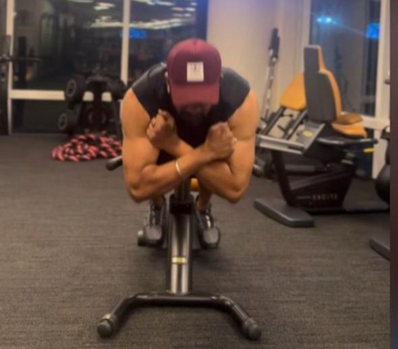 The photo from his intense workout session showed him flaunting his huge biceps while sweating it out on the machine. His face was not visible in the pic as he was wearing a sports cap.
