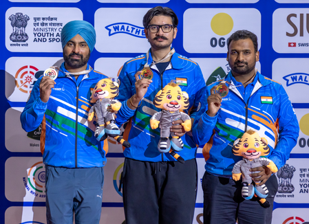 On the final day, Indian shooters swept the podium in the 25m Centre Fire Pistol and 25m Pistol Junior events while also adding three medals in the 50m Rifle Prone Women Senior and Junior events. They also added four gold medals in the team events to end the championship on a high note.