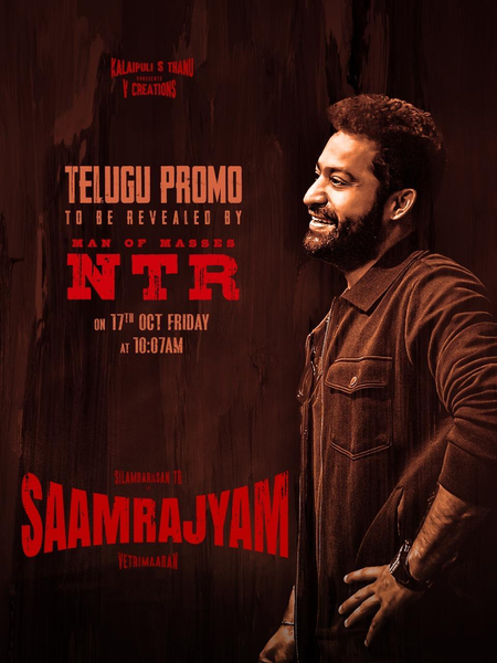 Taking to his timeline, producer Kalaipuli S Thanu, who is producing the film, wrote, ” NTR for STR. The empire rises beyond borders! The much-awaited #Arasan now roars in Telugu as #Saamrajyam – a kingdom of power, pride, and pure mass! The Man of Masses @tarak9999 will unveil the Telugu promo on 17th Oct, Friday at 10:07 AM #NTRforSTR.”