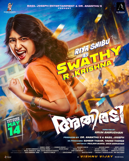 Tovino Thomas, who shared the first look poster of the actress on his social media timelines, wrote, “Vibe check, Passed. Meet the heart of ATHIRADI. #riyashibu #athiradi #CharacterReveal. A film directed by Arun Anirudhan, produced by Dr. Ananthu S & Basil Joseph, under the banners of @basiljosephentertainment & @dr.ananthu.entertainments. Releasing May 14th, 2026.”