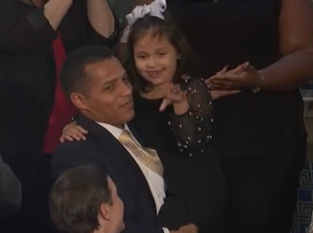 She received a standing ovation when Trump called her up, and her father, Marcus Coleman, held her up.